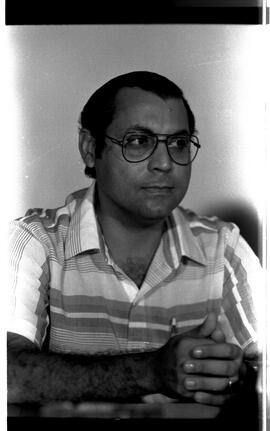 Entrevista coletiva concedida pelo candidato vencedor ao governo de Mato Grosso Júlio José de Campos, acompanhado pelo vice-governador eleito Wilmar Peres de Farias, pelo então governador Frederico Carlos Soares de Campos e pelo presidente regional do Partido Democrático Social (PDS) José Monteiro de Figueiredo. Fotógrafo Lenine Martins.