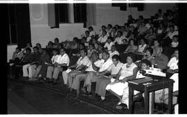 Assembleia Geral dos associados à Cooperativa Habitacional dos Servidores Públicos do Estado de Mato Grosso (COOPHAS) para aprovação do projeto do Conjunto Habitacional Morada do Ouro. Fotógrafo Osmar Cabral.