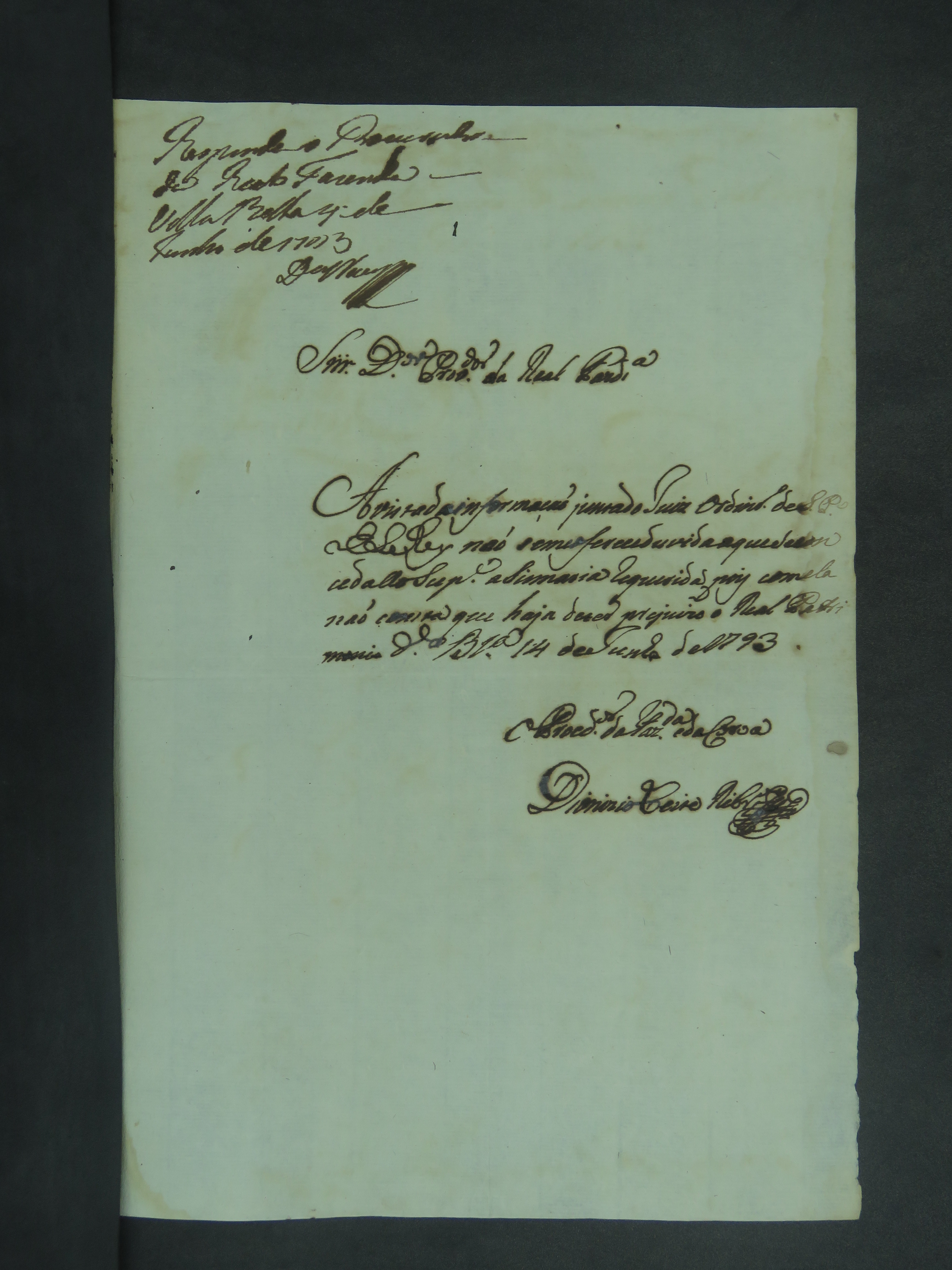 REQUERIMENTO de Manoel Joaquim de Oliveira ao Governador e Capitão-General da Capitania de Mato Grosso João de Albuquerque de Melo Pereira e Cáceres.