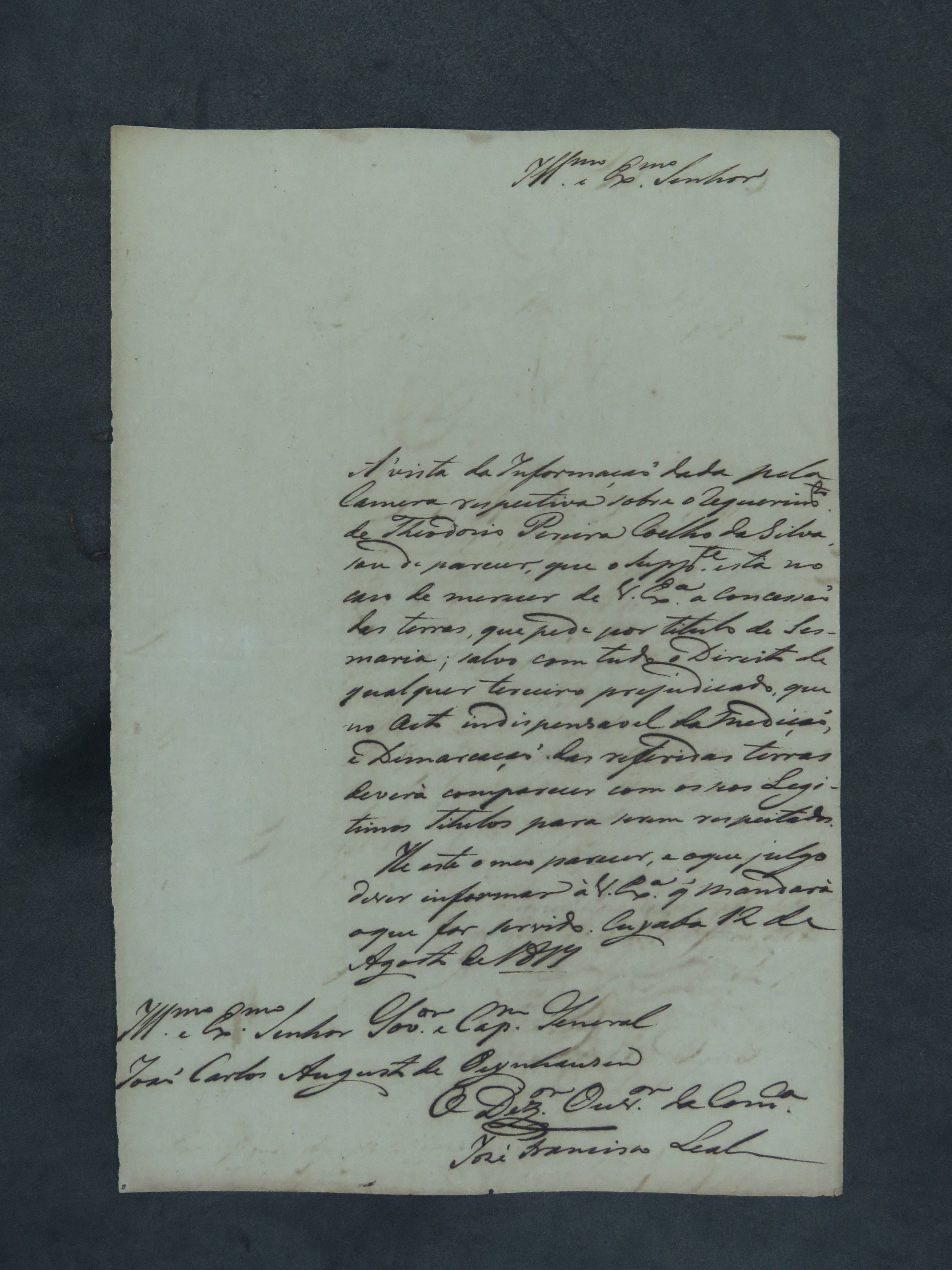 REQUERIMENTO de Theodozio Pereira Coelho da Silva ao Governador e Capitão-General da Capitania de Mato Grosso João Carlos Augusto d´Oeynhausen Gravemberg.