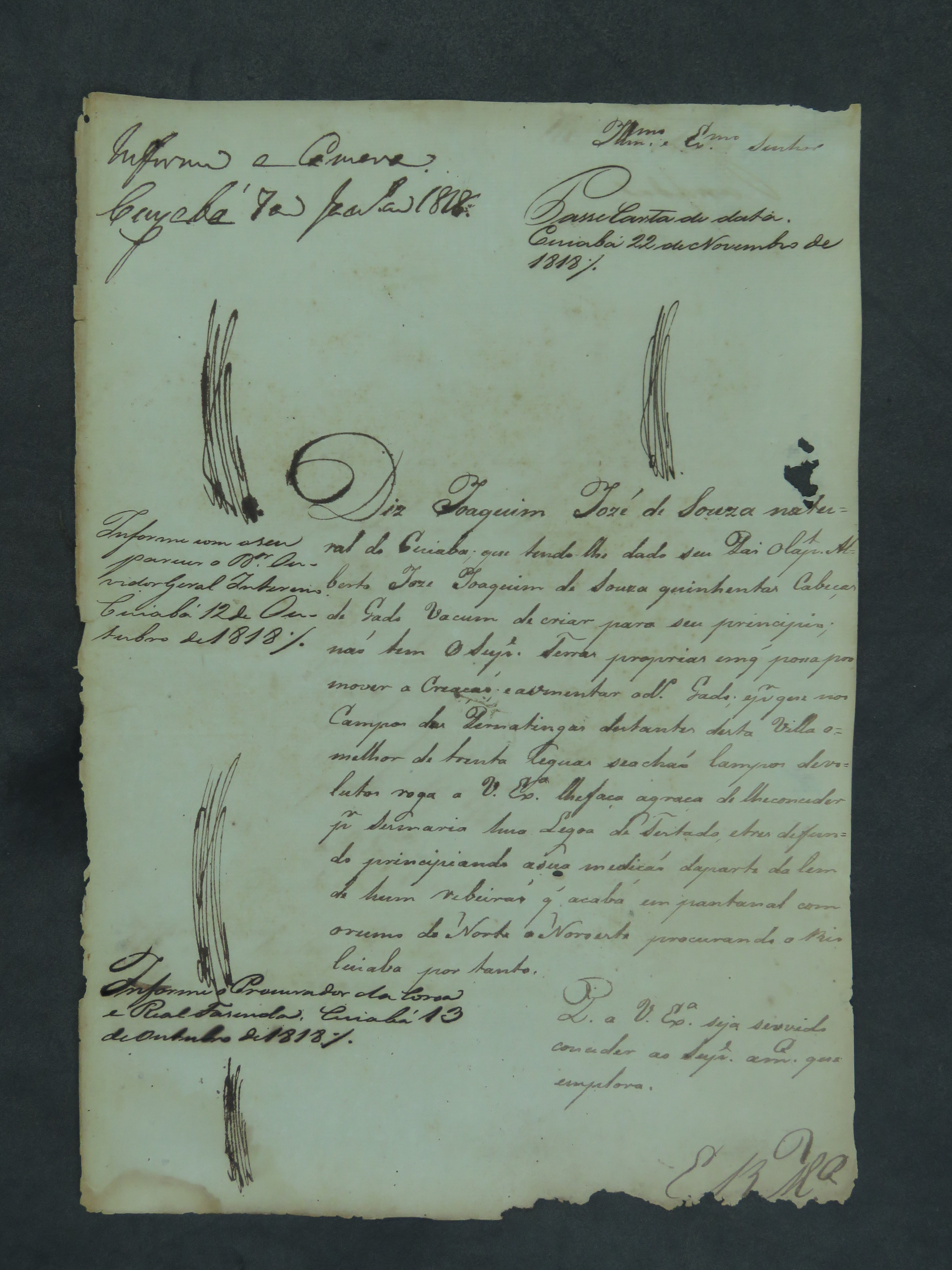 REQUERIMENTO de Joaquim José de Souza ao Governador e Capitão-General da Capitania de Mato Grosso João Carlos Augusto d´Oeynhausen e Gravemberg.