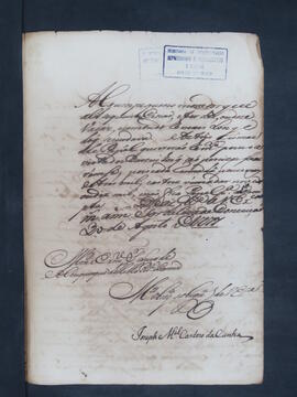 CARTA do Comandante José Manoel Cardoso da Cunha ao Governador e Capitão-General da Capitania de Mato Grosso Luís de Albuquerque de Melo Pereira e Cáceres