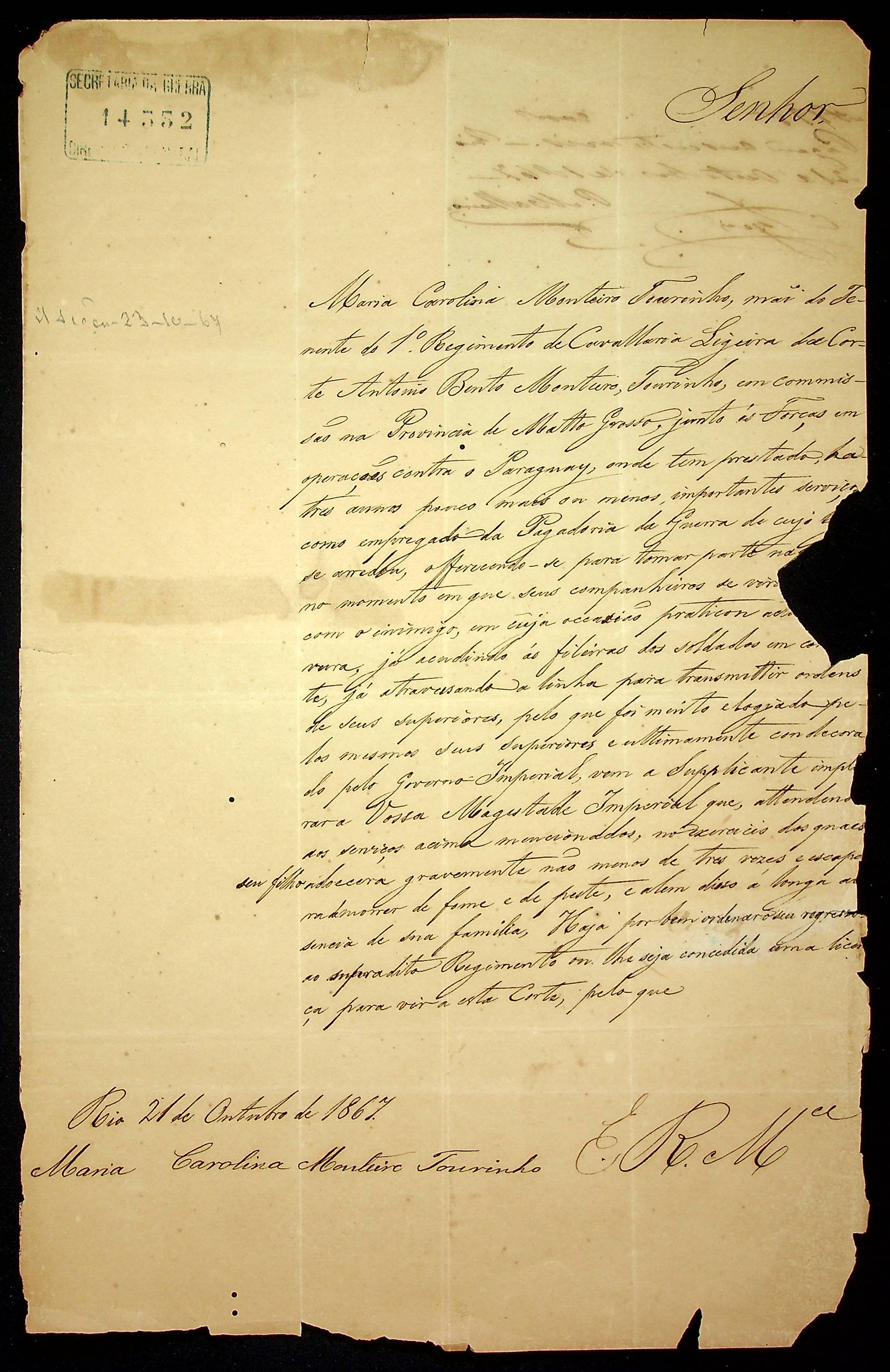 REQUERIMENTO de Maria Carolina Monteiro Tourinho sem identificação do Requerido.