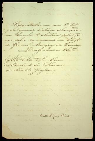 OFÍCIO de Ernesto Augusto Pereira ao Vice-Presidente da Província de Mato Grosso.