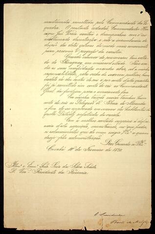 RELATÓRIO com aditamentos à Assembleia Legislativa Provincial feito pelo Presidente da Província, Barão de Melgaço ao Vice-Presidente da Província, Luiz da Silva Prado.